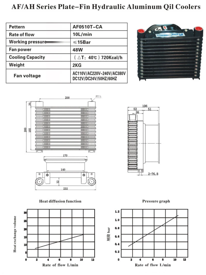 유압 라디에이터/공기 냉각 핀 Af0510t-Ca 유압 스테이션 공기 냉각기 220V/24V/380V/110V/12V 오일 쿨러
