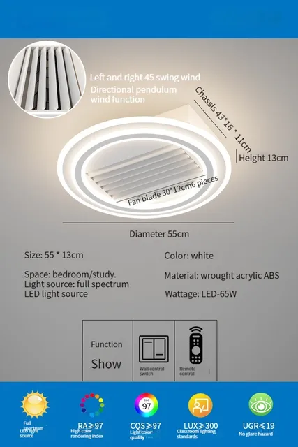 조명이 있는 블레이드리스 천장 선풍기 원격 제어 현대 팬 조명 거실 침실 LED