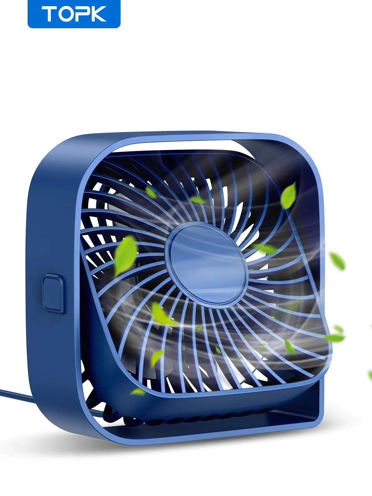 TOPK USB 데스크 선풍기 강한 기류 저소음 작동 3 단 바람 미니 테이블 360 회전 헤드 홈 오피스 침실