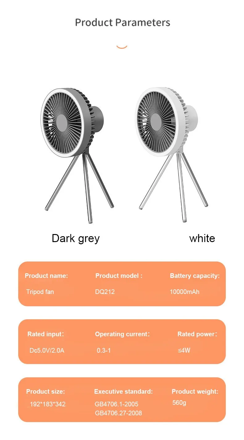 액세서리 세부 정보:팬 호스트 * 1, 삼각대 * 1, 후크 * 1, Type-c 충전 케이블 * 1, 영어 및 중국어 지침 * 1