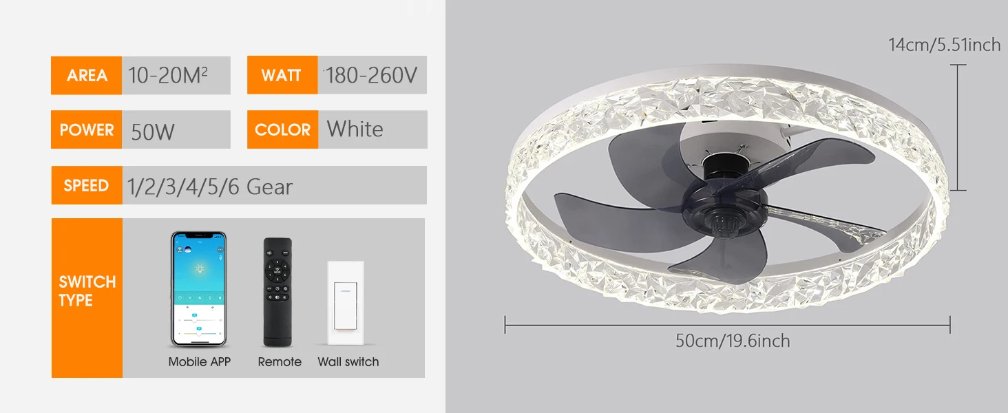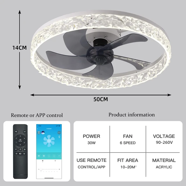 IRALAN-밝기 조절 Led 조명 및 리모컨 천장 선풍기 홈 데코레이션 침실 거실 식당용