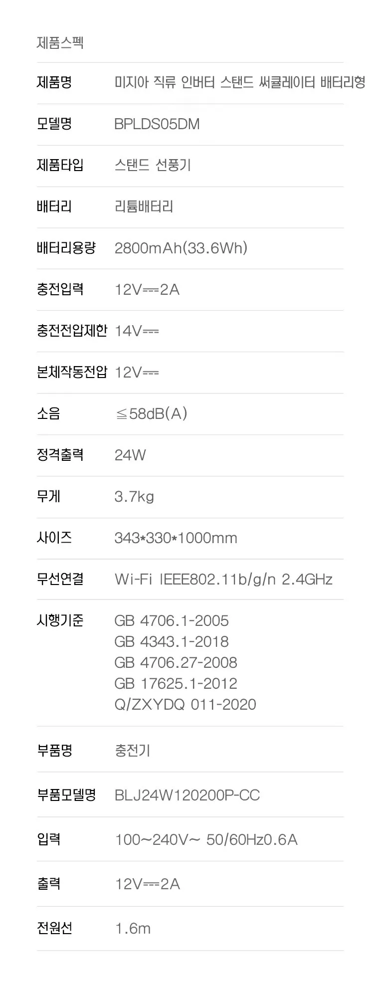 제품명: Mijia DC 인버터 순환 플로어 팬 배터리 에디션