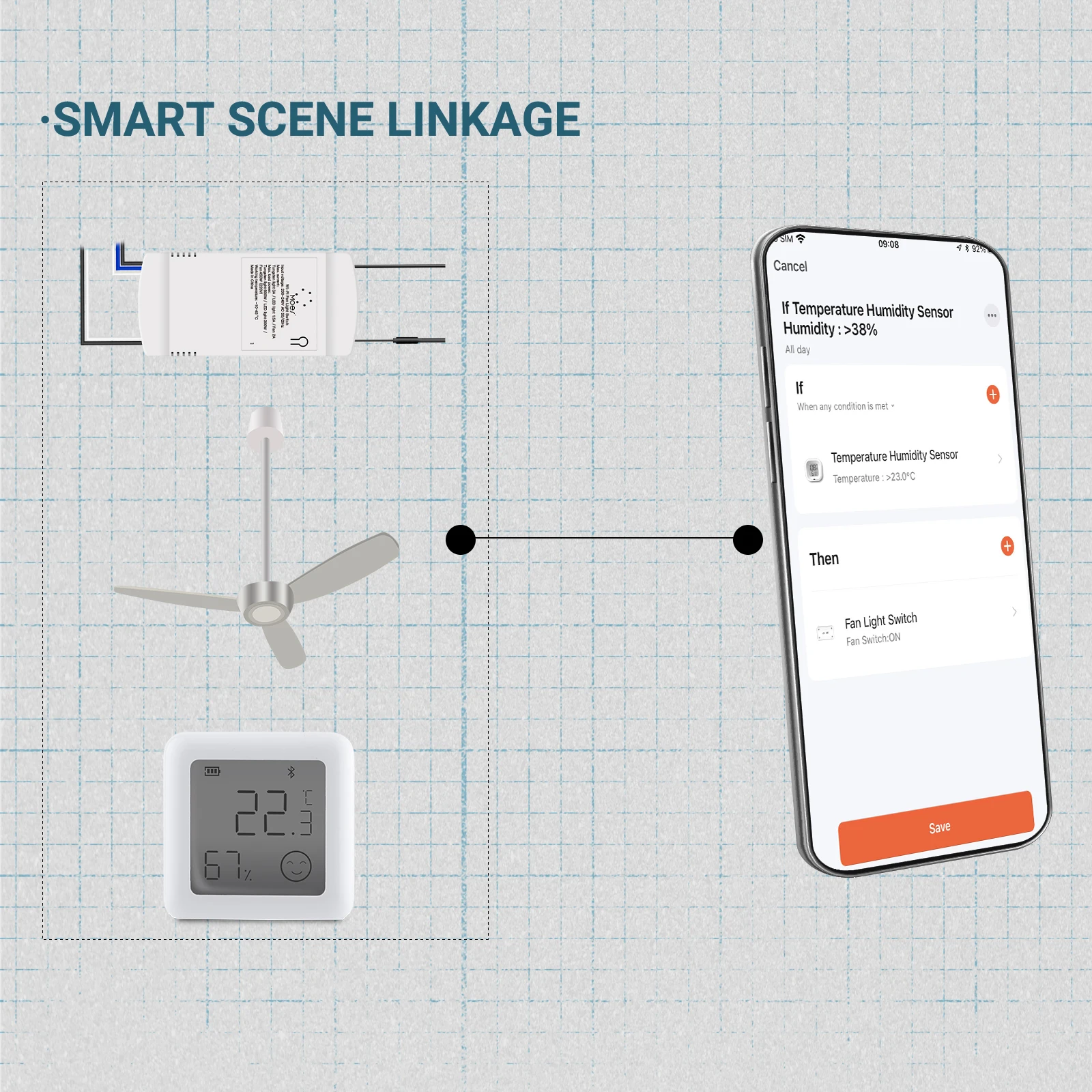 전화로 MOES APP (또는 Smart Life App) 로 팬 램프를 원격으로 모니터링하고 제어하여 쉽게 제어하여 에너지를 절약 할 수 있습니다