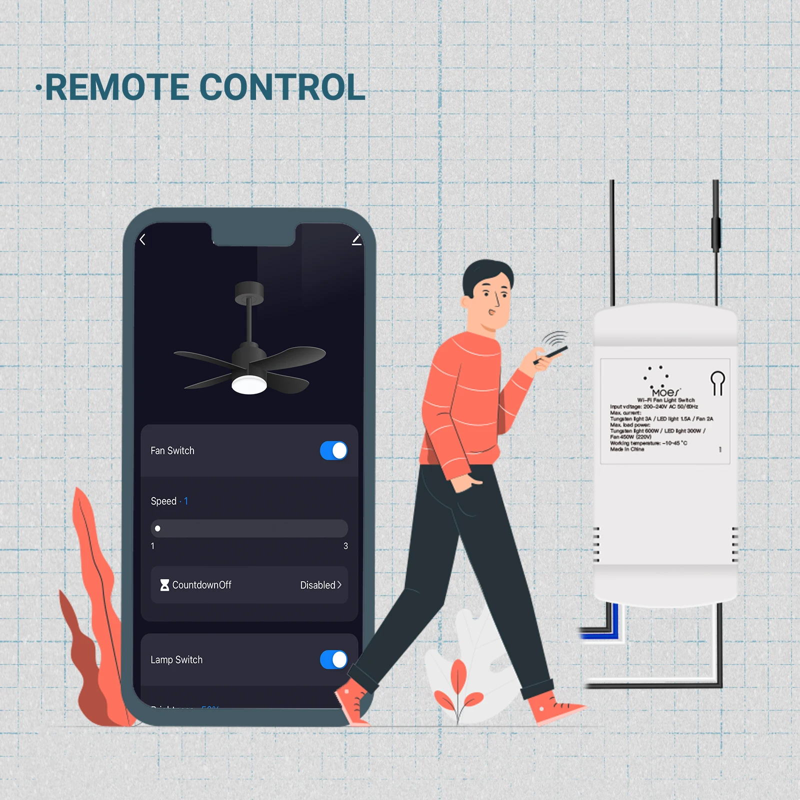 MOES 스마트 Wi-Fi 천장 선풍기 스위치 모듈 제어 팬 및 조명 Alexa 및 Google과 호환되는 앱 또는 음성과 별도로