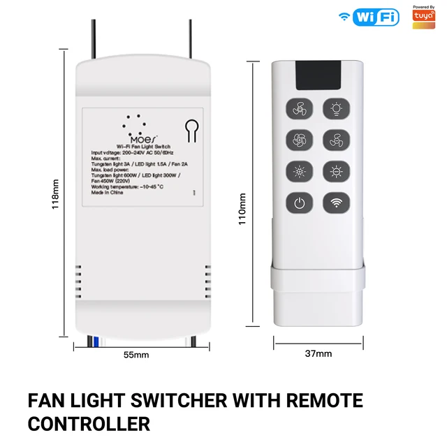 MOES 스마트 와이파이 천장 팬 스위치 모듈 및 조명 제어 앱 또는 음성 Alexa Google 호환 가능