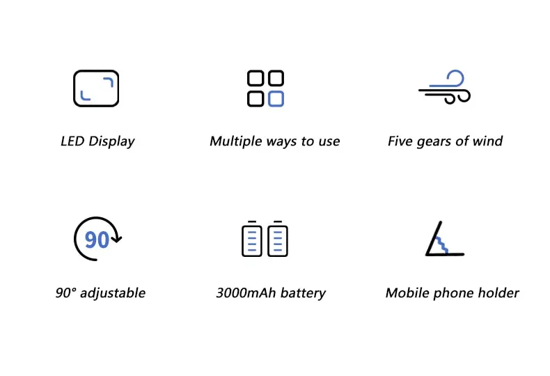 1.[다기능 소형 팬] 30000mAH 배터리, 아로마 테라피 태블릿으로 데스크탑, 핸드 헬드 또는 고삐 목과 같은 다른 경우에 사용할 수 있습니다