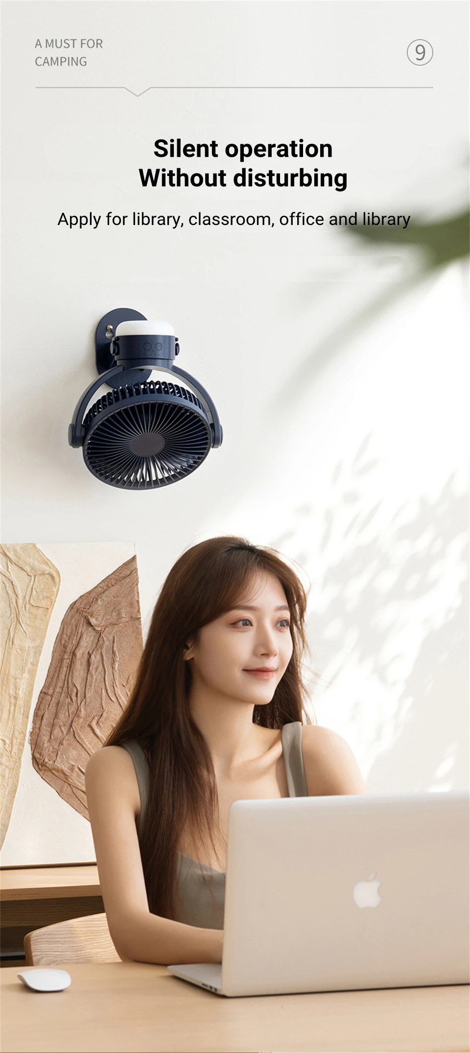 6. 120 ° 좌우로 자동 회전, 90 ° 상하 수동 회전, 넓은 공기 공급;