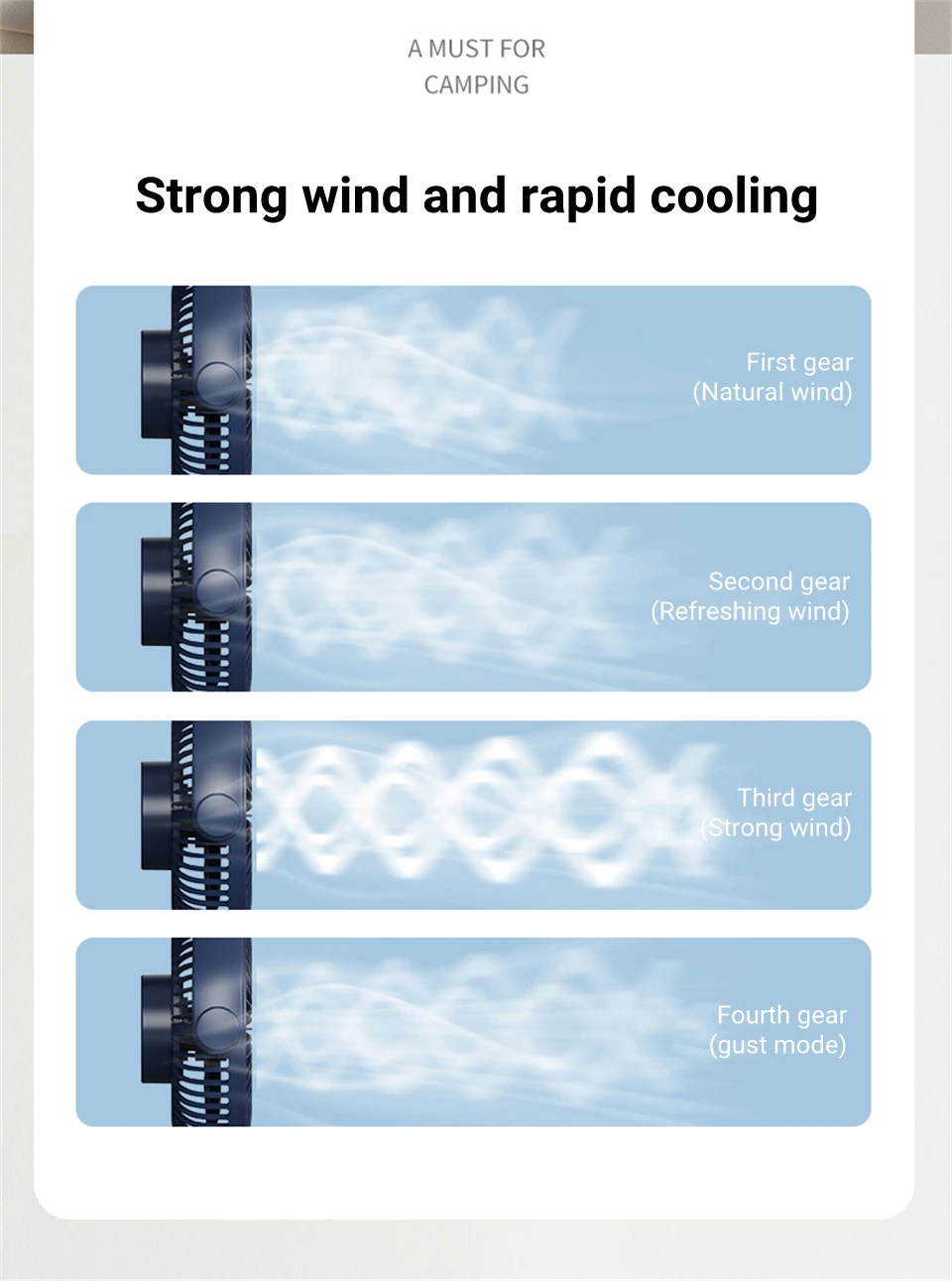 삼. 4 개의 기어로 바람, 1-3 단 기어 3 에서 강한 바람에 부드러운 바람, 기어 4 에서 돌풍