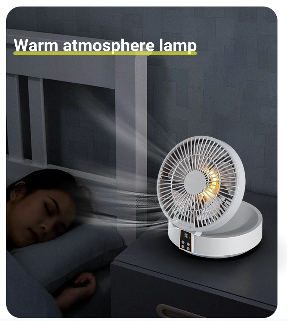 USB Portable Electric Fan Wireless Wall Mounted Air Cooler with LED Light Folding Fans Table Desktop Ventilator with Remote Control