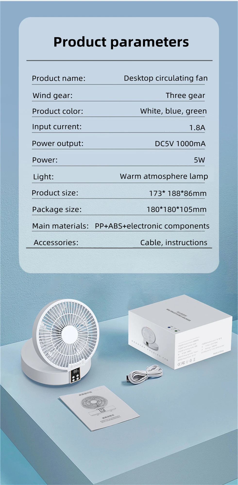 * 90° folding design,adjustable wind direction;