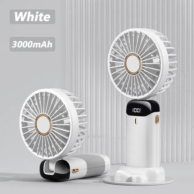 휴대용 핸드헬드 선풍기 사무실 책상 다기능 접이식 양방향 소형 3000mAh 목 끈 포함