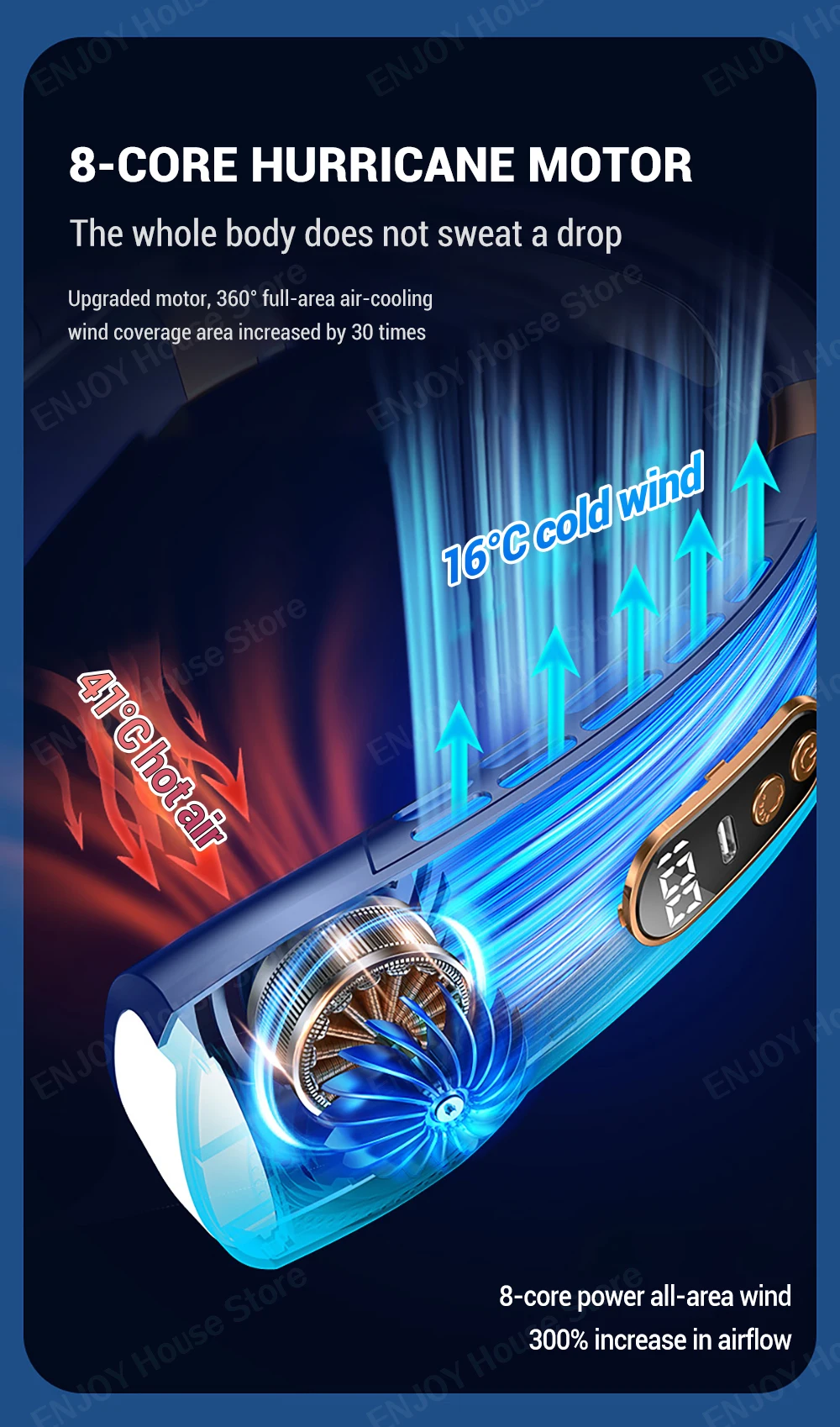 5. 휴대용 및 다목적: 이 휴대용 미니 선풍기를 집, 이동 중, 하이킹, 캠핑 또는 낚시로 시원하게 유지할 수 있습니다. 그것은 당신만의 착용할 수 있는 에어컨을 갖는 것과 같습니다!