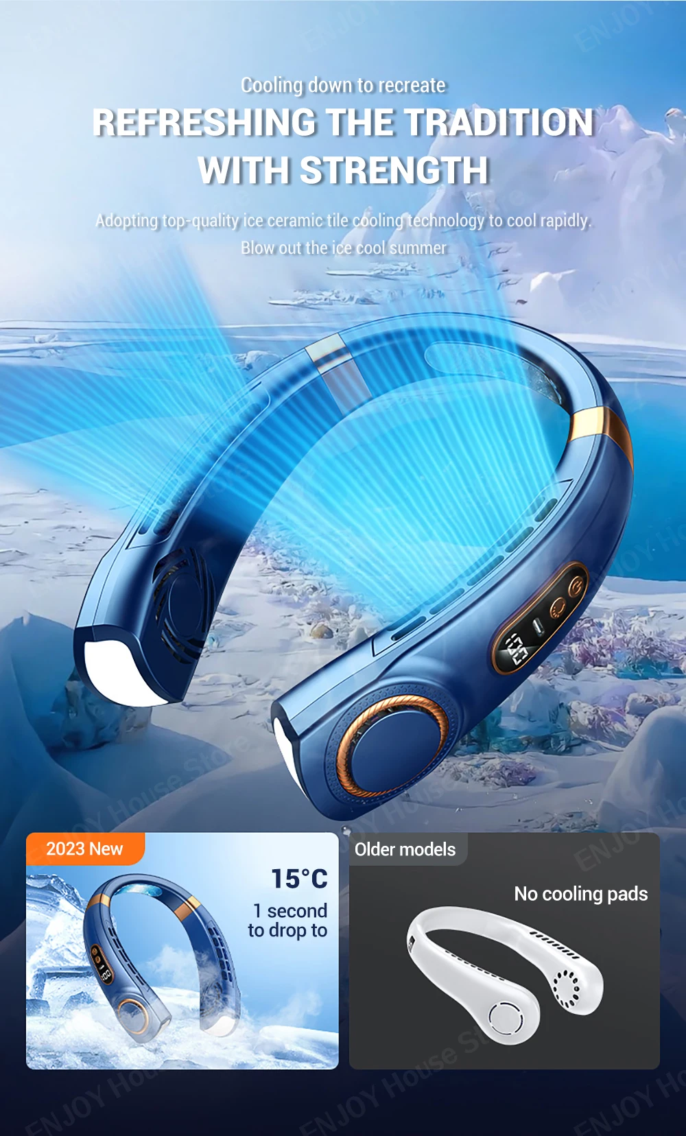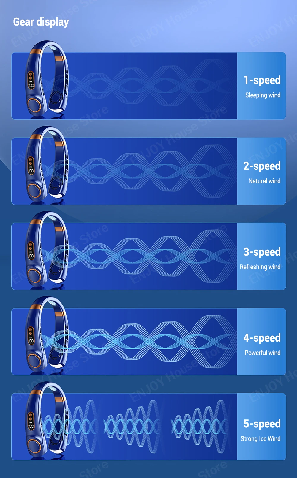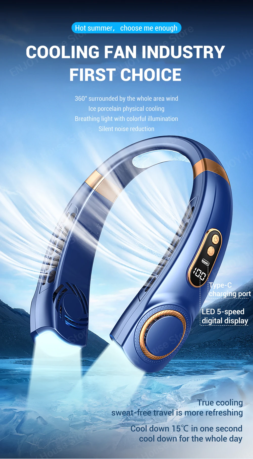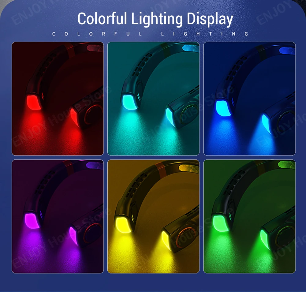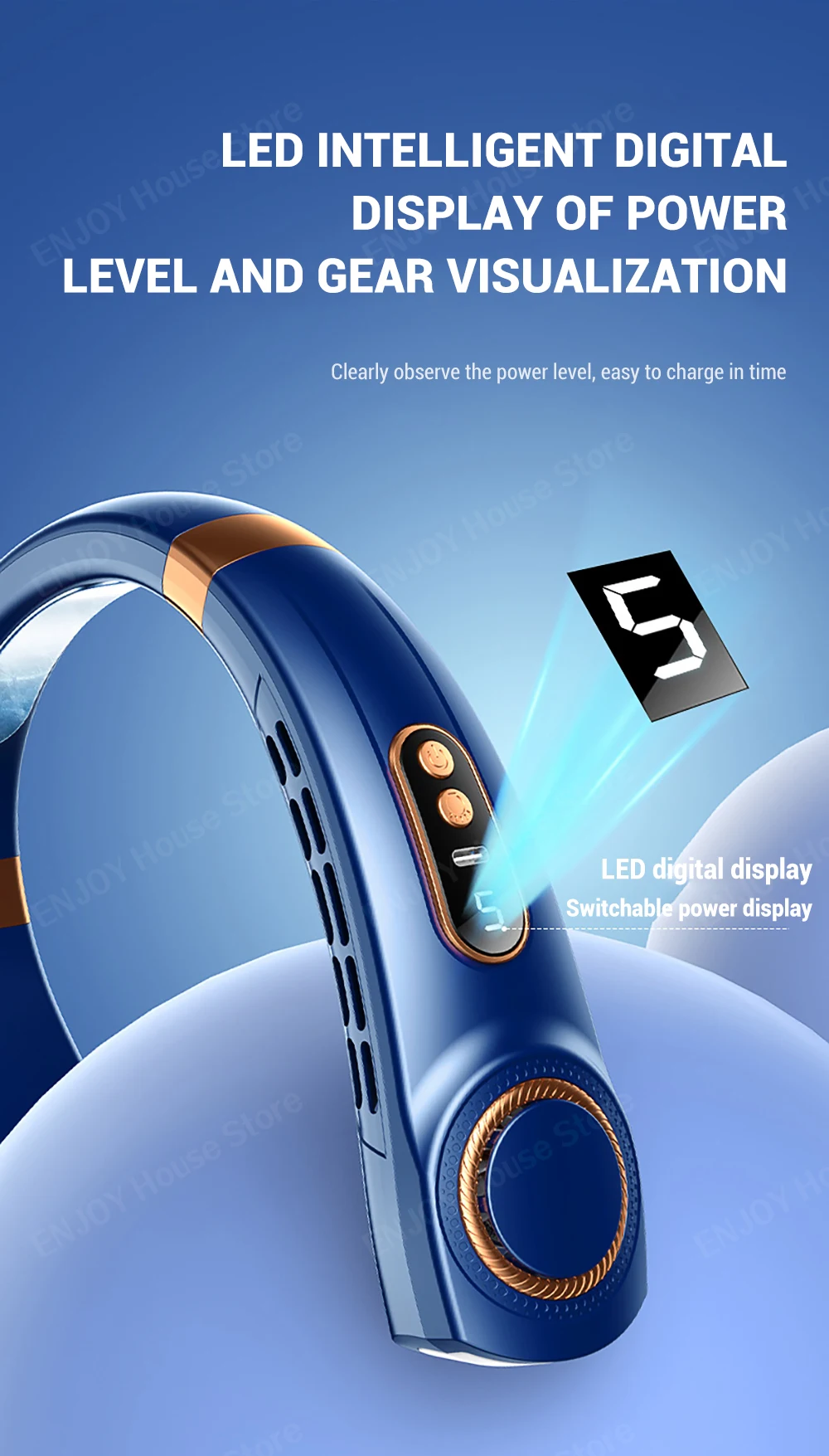 4. 편안하고 저소음: 교수형 목 팬은 편안하고 피부 친화적으로 사용하도록 설계되었습니다. 저소음 수준에서 작동하므로 사무실이나 독서와 같은 조용한 환경에 적합합니다. TV를 보거나 전화를 쉽게 걸 수도 있습니다.