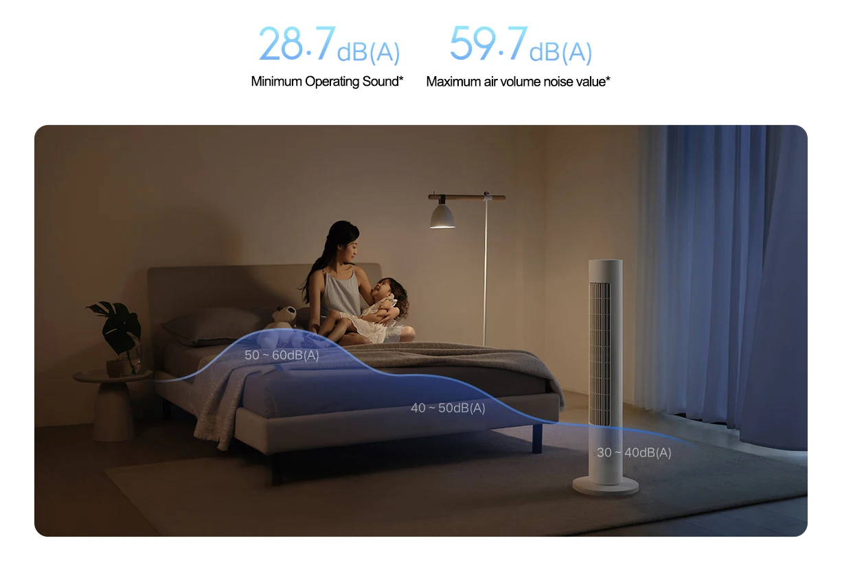 Mijia 지능형 DC 주파수 변환 타워 팬 2 는 DC 주파수 변환 모터를 채택합니다. 바람 감각은 부드럽고 직선이 아닙니다. 28.7dB(A) 까지의 직접 블로우 에어 1 블록 저소음, 밤에는 방해하지 말고, 부드러운 산들 바람이 당신을 동반합니다.