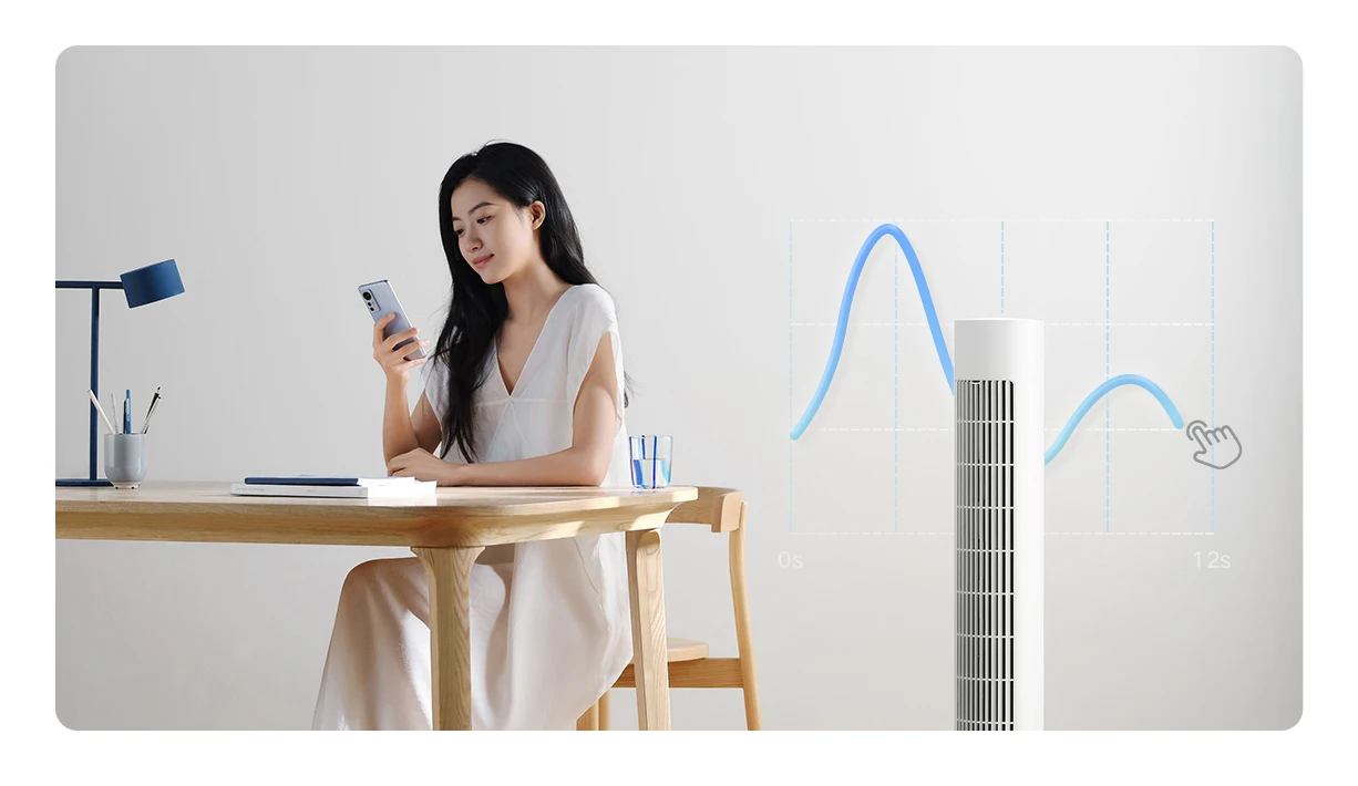 DC 가변 주파수 모터는 원활하게 작동하며 다른 속도 간의 전환은 말더듬없이 부드럽습니다. 자연풍 곡선의 사이클 및 풍속은 Mijia APP에서 사용자 정의 할 수 있습니다. 바람의 느낌은 마음대로 바뀔 수 있습니다. DIY 독점 자연 바람.