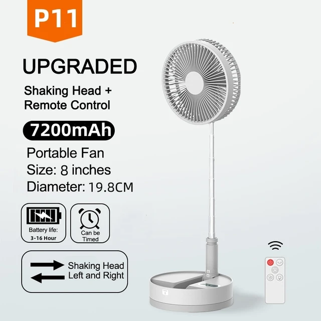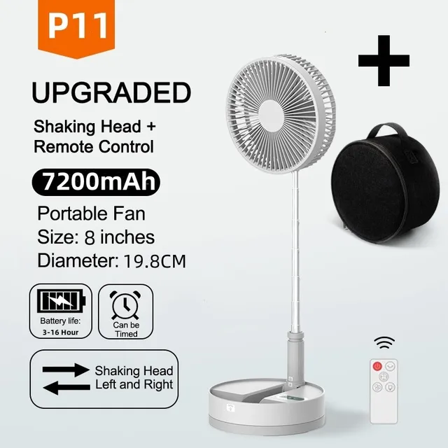 USB 충전식 무선 원격 제어 전기 휴대용 선풍기 P11 7200mAh 테이블 팬 가정 공부 및 야외 캠핑