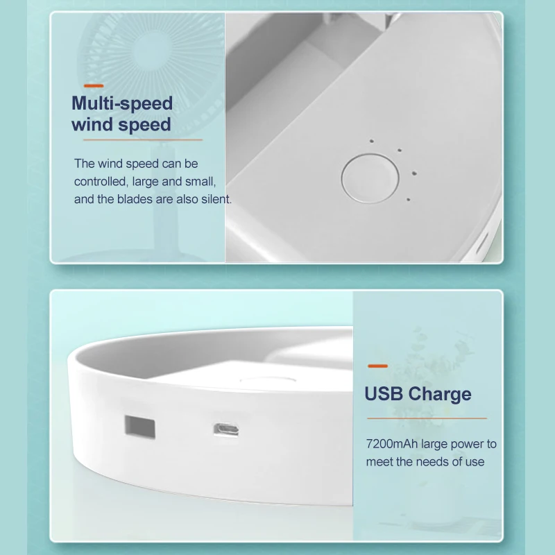TINTON LIFE-접이식 휴대용 USB 에어 쿨러 조용한 충전식 무선 플로어 스탠딩 팬 캠핑 데스크