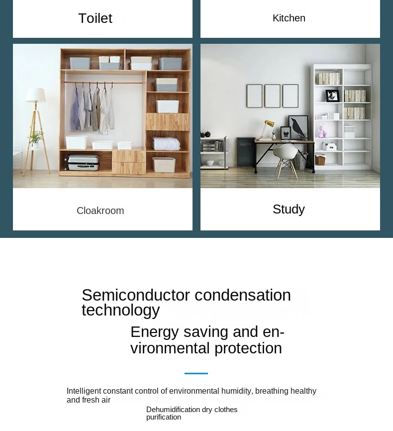 제습기 무소음 무선 습기 흡수 공기 건조기 물 탱크 포함 집 지하실 욕실 옷장용 조용한