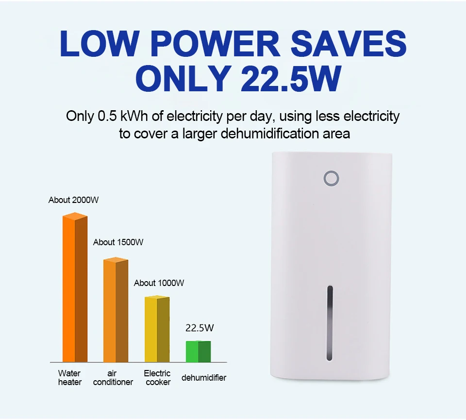 【환경 보호】 습도 제습기의 전력은 시간당 22.5 W/시간이며 24 시간 동안 0.54 kW의 전기만 소비합니다. 건강한 삶의 질을 제공하는 동안 비용이 많이 들지 않습니다.