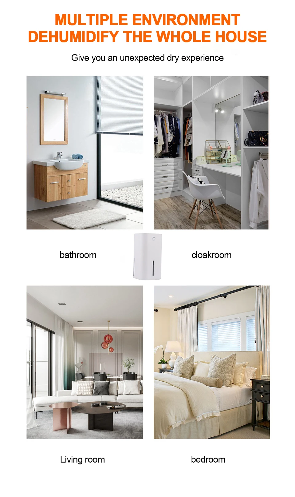 【소형 및 휴대용】 소형 크기 (길이 13cm, 너비 13cm, 높이 24cm), 무게 1kg 미만이면 어느 위치로든 쉽게 이동할 수 있습니다. 가정, 부엌, 욕실, 침실, RV, 캐러밴, 차고 및 옷장의 습도를 줄이기위한 완벽한 옵션입니다.