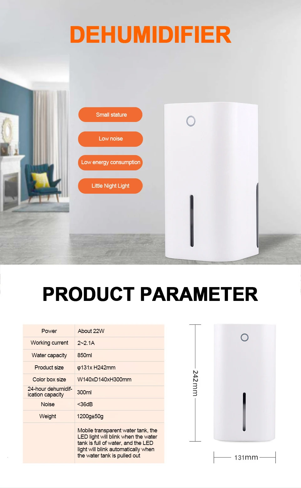 LED 조명 방습 및 흡습 제습기가있는 전기 휴대용 제습기 미니 저소음 침실 공기 건조기