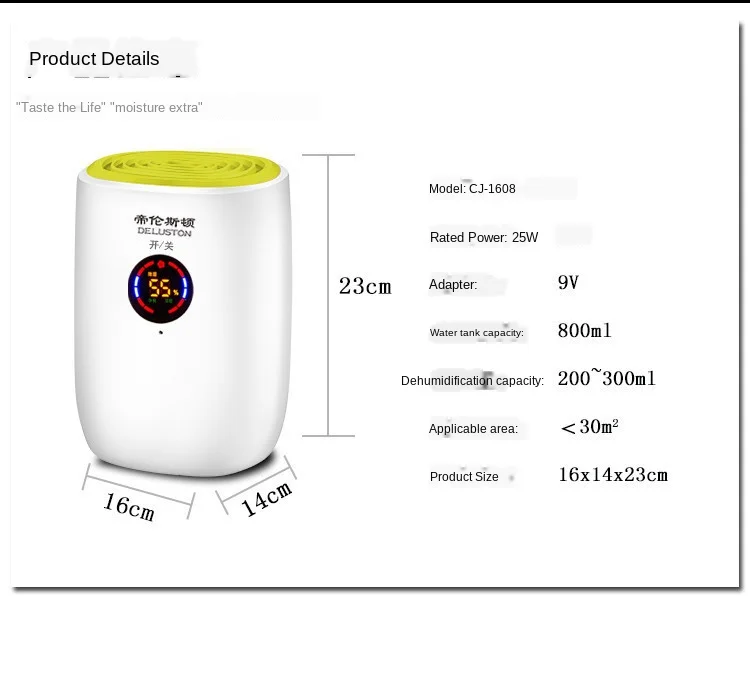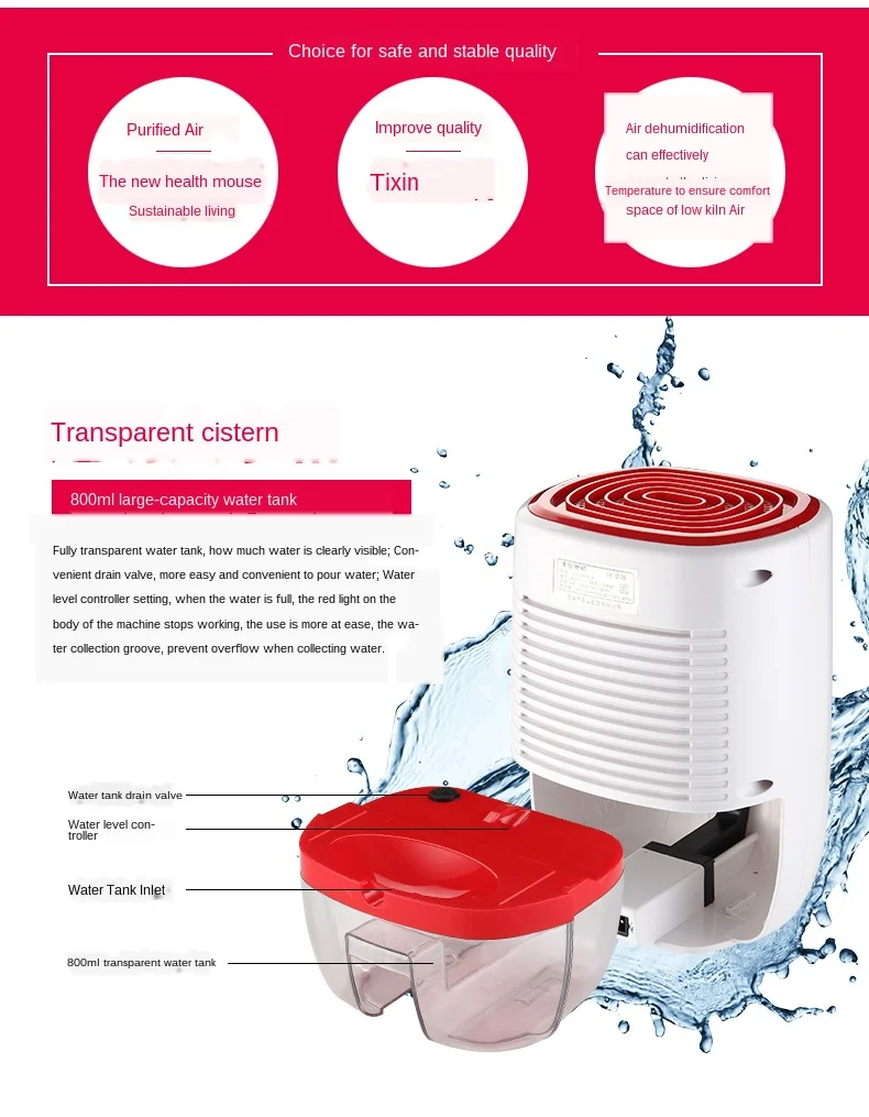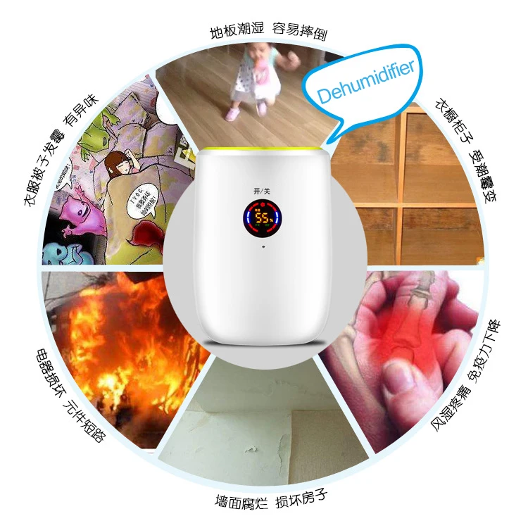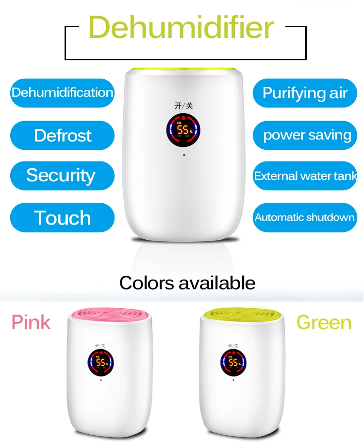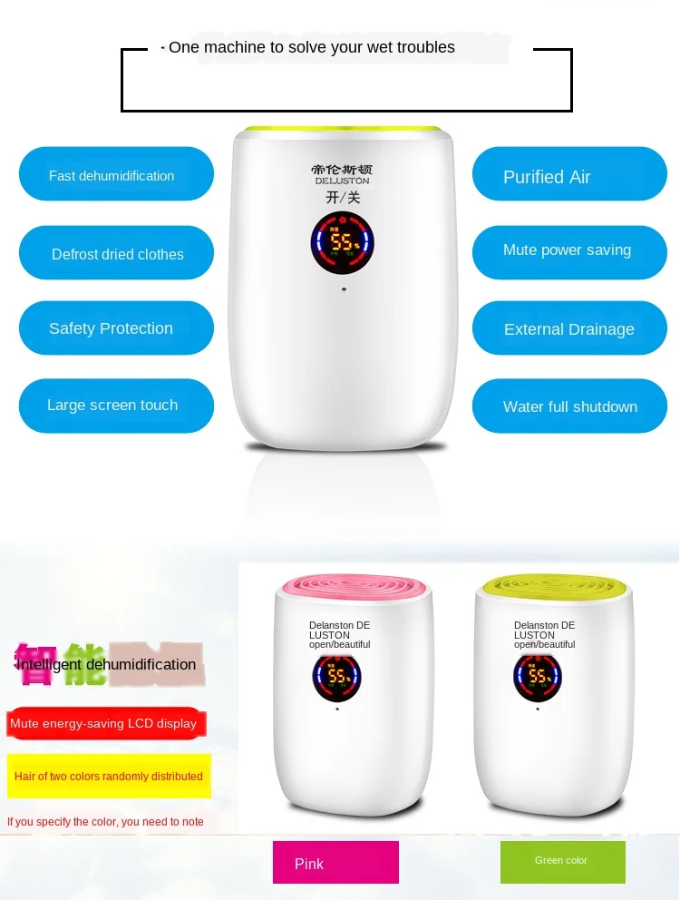 제습기 무소음 무선 가정용 전기 미니 공기 휴대용 LED 디스플레이 청정기 자동 전원 끄기 제상 기계 EU 1