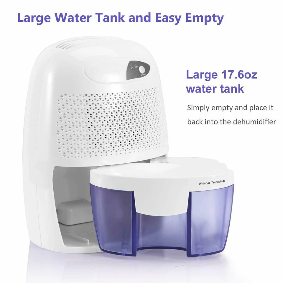 제습기는 용량에 도달하면 자동으로 차단됩니다. 최대 250ml/day의 수분을 흡수하고 탈착식 트레이로 500ml 물 탱크 용량을 흡수합니다.