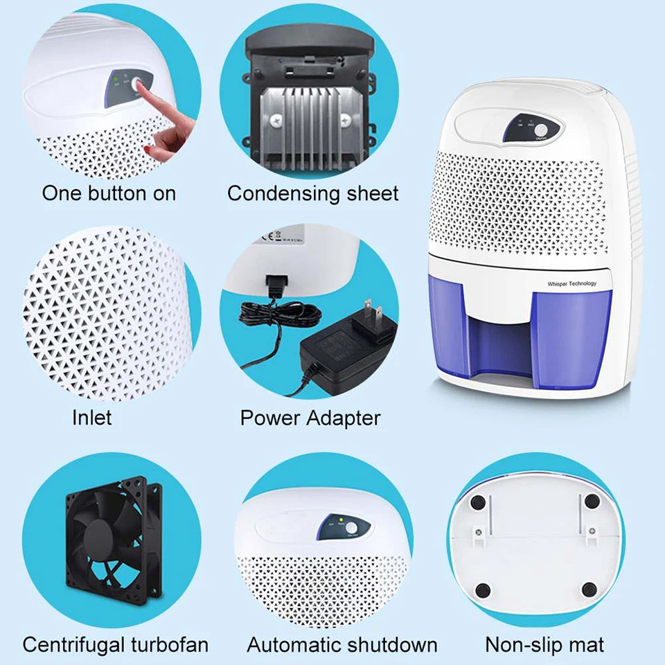 조용하고 휴대용 소형 제습기는 공기 중의 습기, 곰팡이 및 습기를 효율적으로 제거합니다. 부엌, 옷장, 창고, 침실, 거실, 사무실 또는 습기가 많은 공기와 같은 좁은 공간에서 사용하기에 적합합니다.