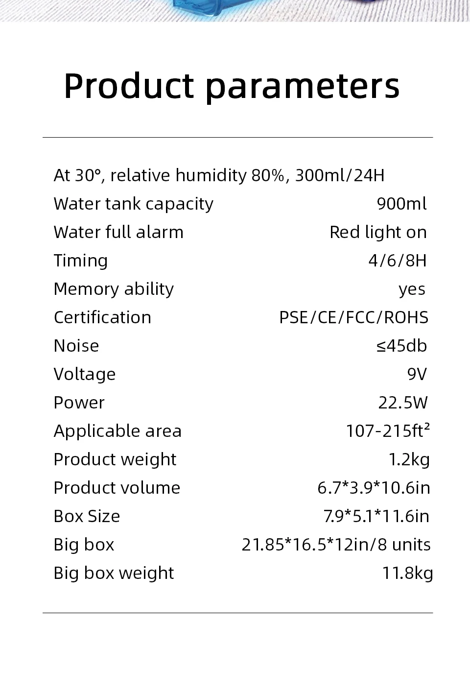 사용 및 표시등의 용이성: 사용하기 쉽고, 제습기 푸시 버튼이 있습니다. 조명된 디스플레이는 직관적으로 제습기 작동 상태를 이해할 수 있습니다 (normafferent gears는 다른 표시기 lightsehumidifying에 해당하고 누수 위험이 없습니다.