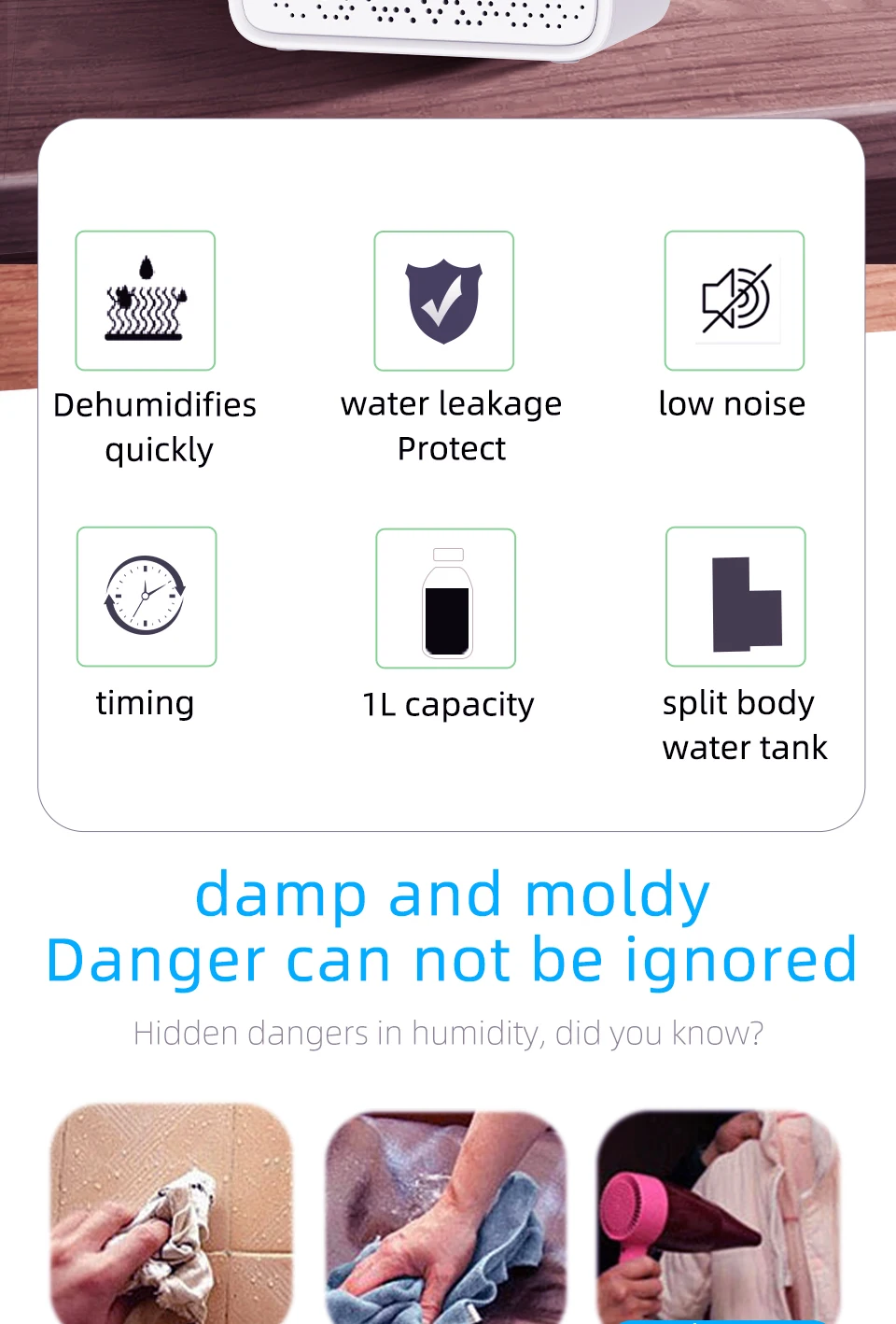 에너지 절약, 매우 조용한: 우리의 전기 제습기 무게 22.5 와트, 적은 전기, 에너지 효율적이고 환경 친화적인.