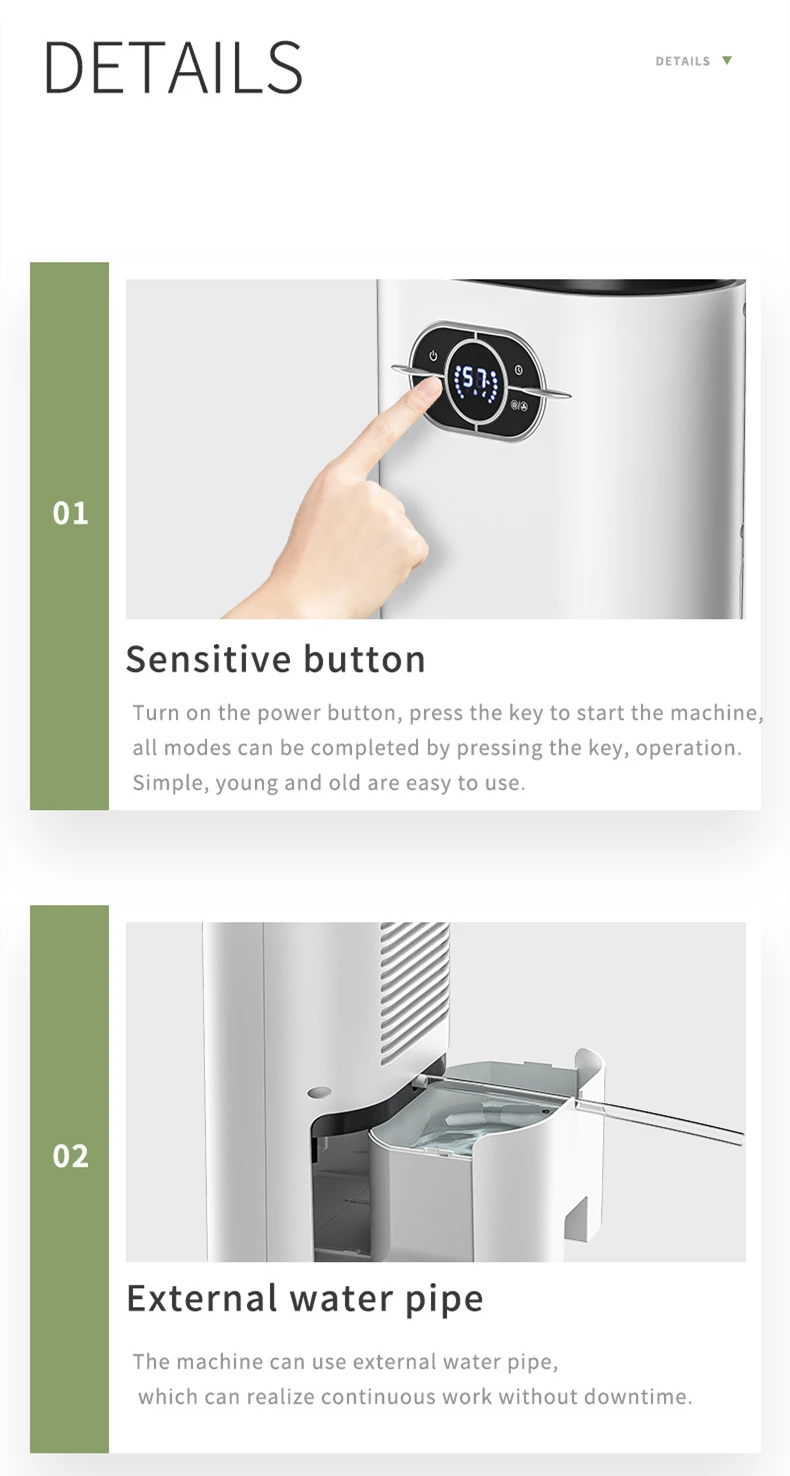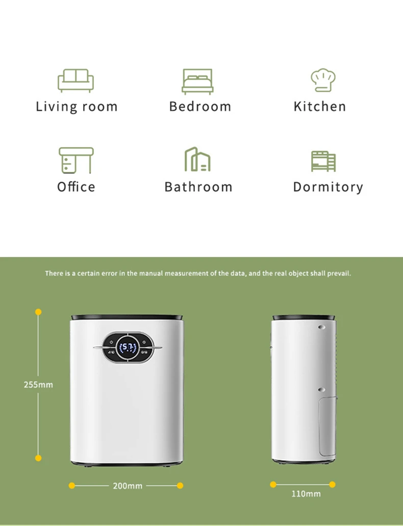 【침실용 초저소음 제습기】다른 요구를 충족시키기 위해 가정용 소형 제습기에는 높은 풍속과 낮은 풍속의 두 가지 모드가 있습니다. 두 가지 모드간에 자유롭게 전환 할 수 있습니다. 24 시간 타이밍 설정은 제습 시간을 유연하게 제어하고 에너지 소비를 줄일 수 있습니다. 수면 모드는 야간에 채택되며 최소 풍속은 30 dB (초 저소음) 이며 LED 화면은 닫혀 있습니다 (눈부신 것이 아님). 편안한 수면 환경을 제공합니다.