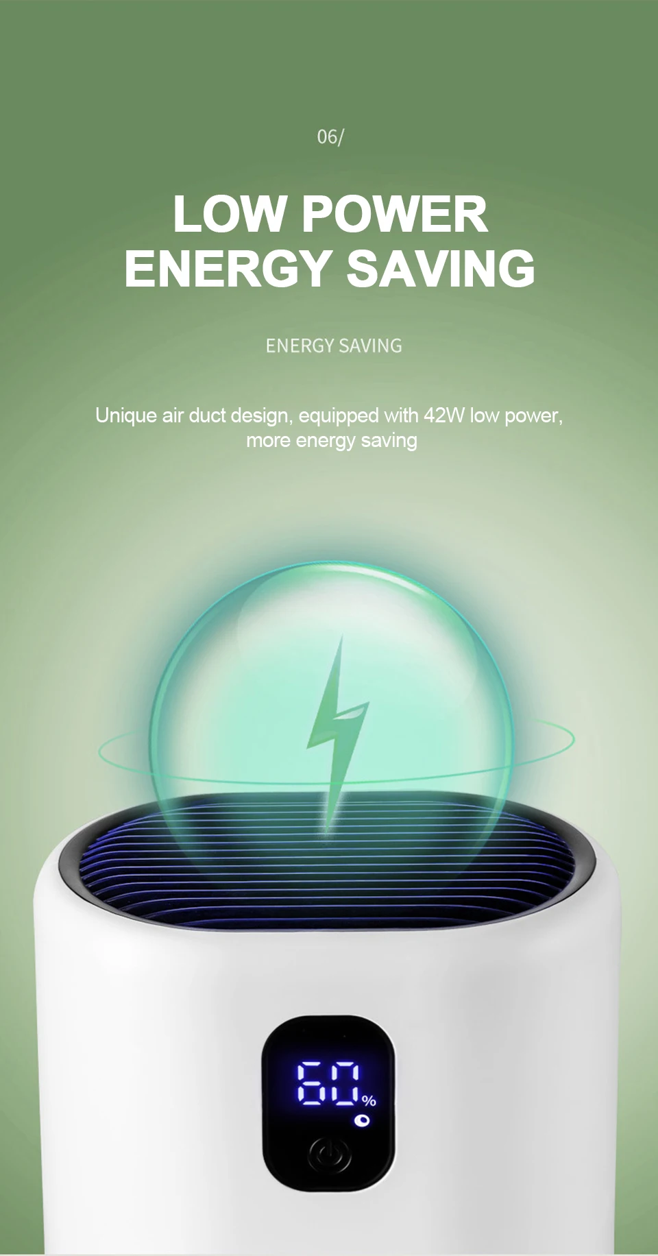 5. 독특한 공기 덕트 디자인. 42W 저전력을 장착하여 전력 소비를 절약합니다.