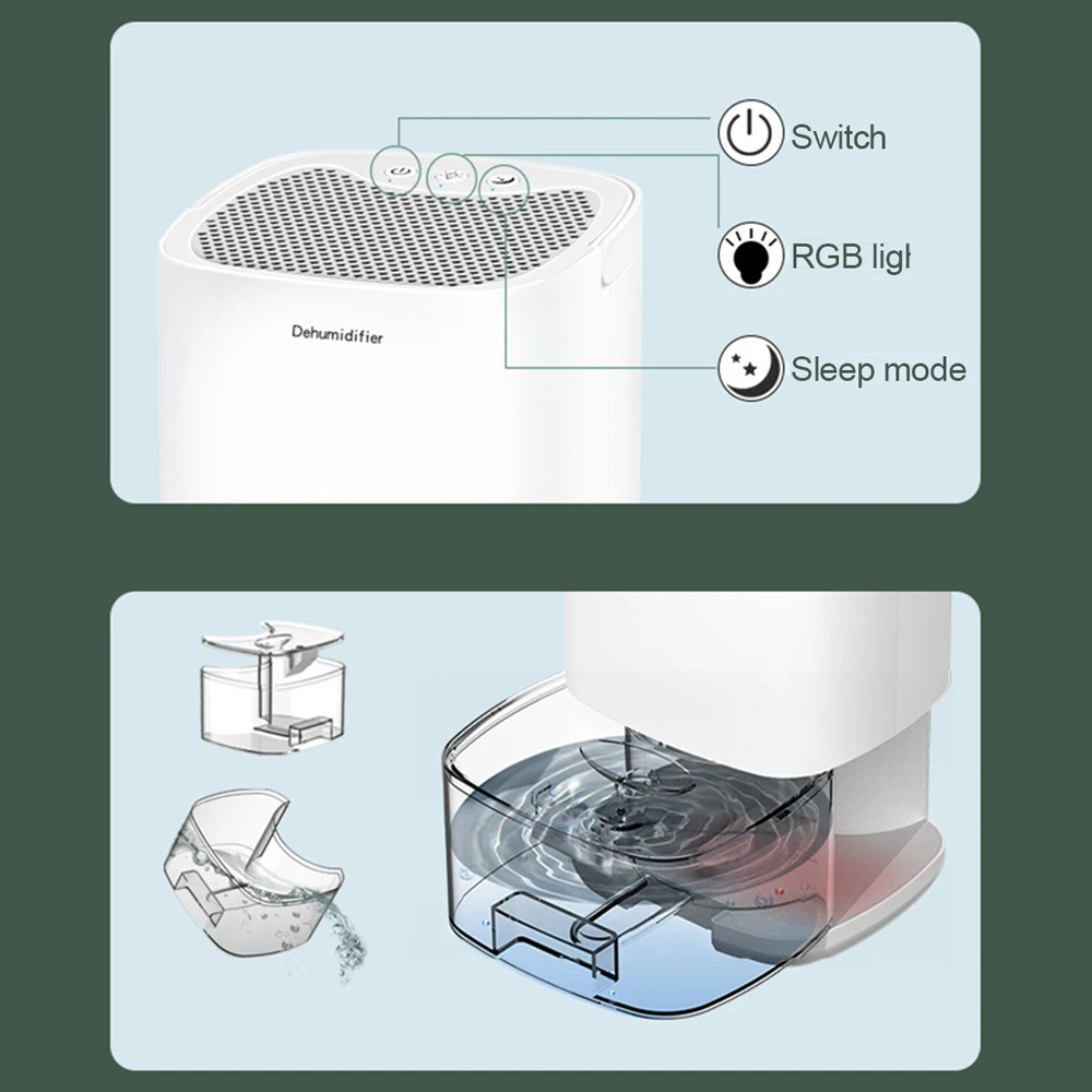 2023 NEW 500ML 자동 전기 제습기 습기 집 지하실 부엌 방 사무실 휴대용 스마트 공기 건조기 청정기 옷장