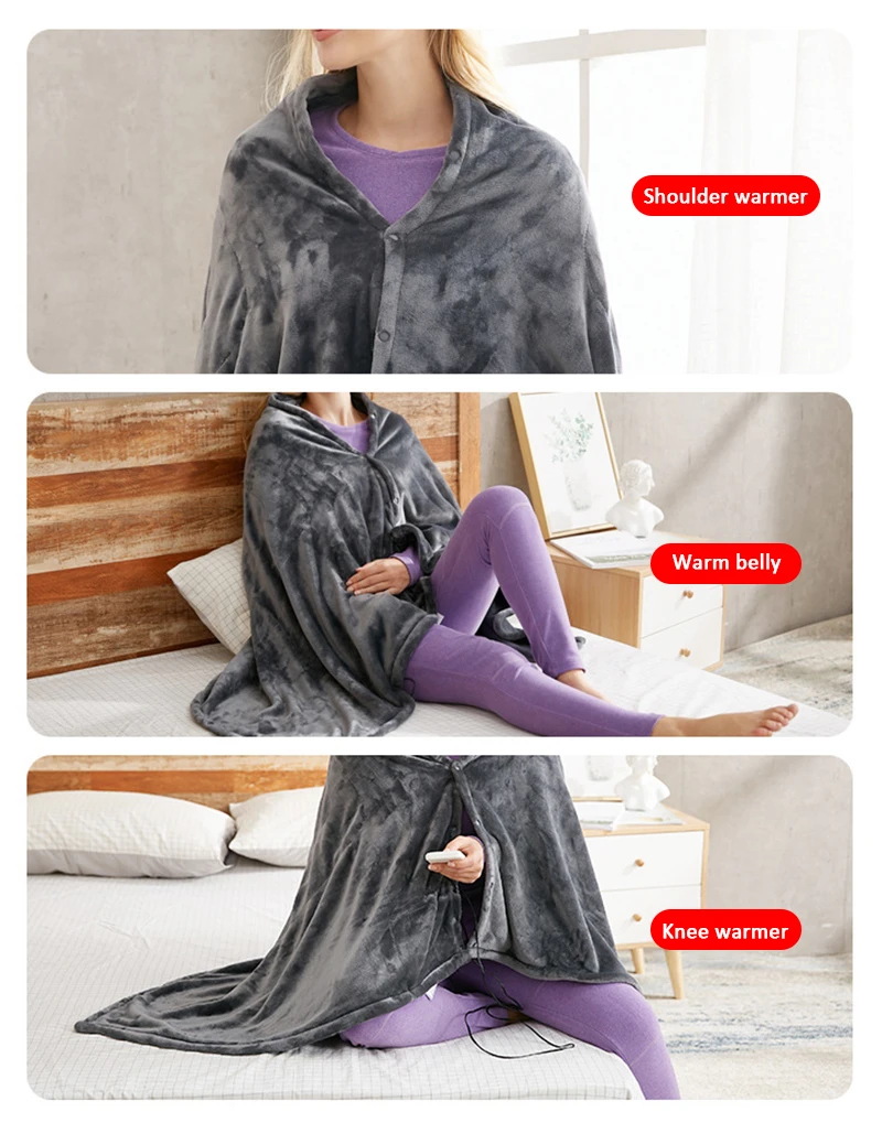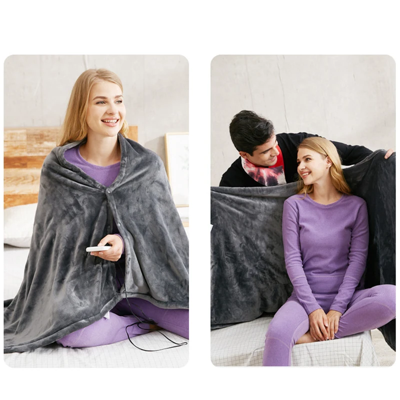 USB 전기 난방 담요 8 지역 가열 따뜻한 숄 3 기어 조정 가능한 플란넬 던지기 담요 겨울 웨어러블 농축 담요