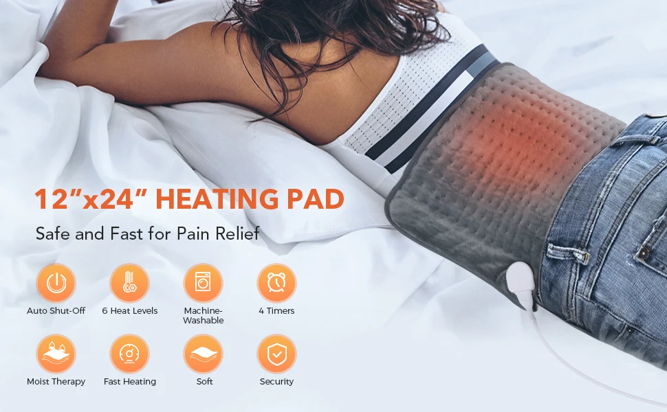 초대형: 12 인치 x 24 인치로 목, 등, 어깨, 복부 또는 다리의 주요 근육통을 덮는 데 적합합니다. 7 피트 코드를 사용하면 침대, 의자 또는 소파에 놓을 수 있습니다.