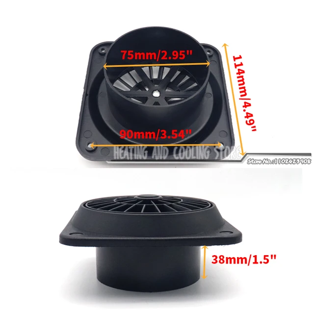 60mm 75mm 90mm 디젤 히터 컨디셔너 덕트 통풍구 (팬 포함) Webasto 자동차 트럭 캠퍼 VAN 용 블랙
