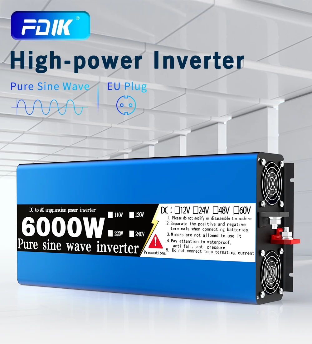 FDIK 순수 정현파 인버터 다중 전력 태양광 유럽 플러그 부스터 12V 230V 4000W 5000W 6000W