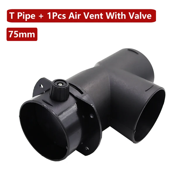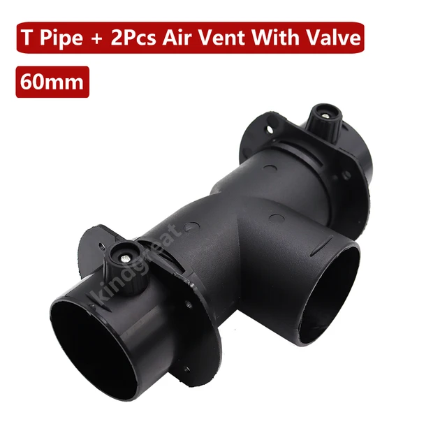 에바스패커 Weasto용 밸브 포함 무시동 히터 플라스틱 커넥터 배기 덕트 T 파이프 에어 벤트 60mm 75mm 2k