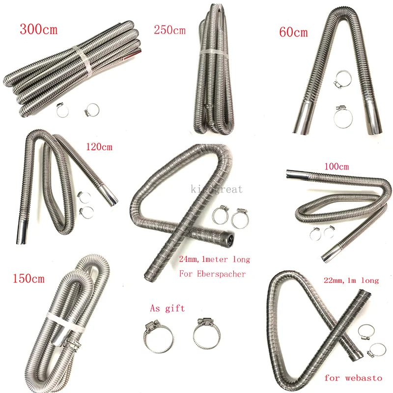 Kindgret 60/100/120/150/200/250/300cm 자동차 트럭 밴 디젤 에어 주차 히터 스테인레스 스틸 배기 파이프 튜브 가스 벤트 호스