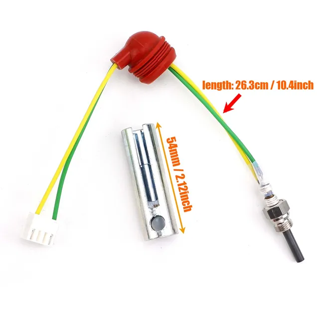 패키지 포함: 1x 글로우 플러그 1x 렌치 사양: 재질: 세라믹 및 플라스틱 및 금속 길이: 약 26.3cm / 10.4 인치 크기: 그림처럼 전류: 4.8-5.5A 전압: 12V 모델 번호: P0211301 피팅: Eberspacher D2 D4 D4S 히터 용 에어 디젤 주차 히터 중요 참고 사항: 호환성은 참조 용입니다. 주문 전 당신 차량 맞는지 확인 부탁드립니다. 질문이 있으시면 언제든지 저희에게 연락하십시오.