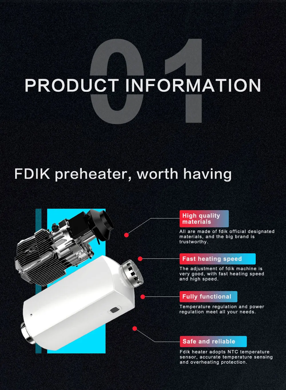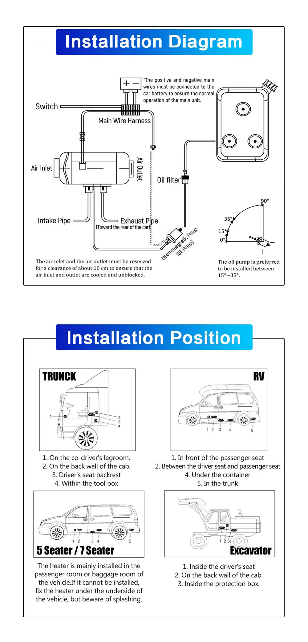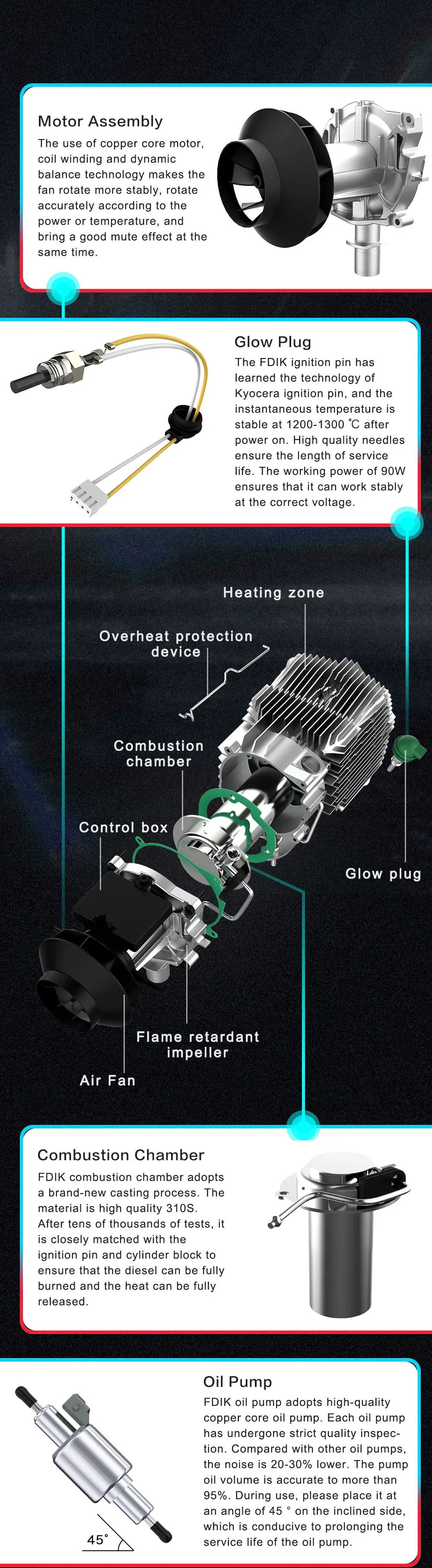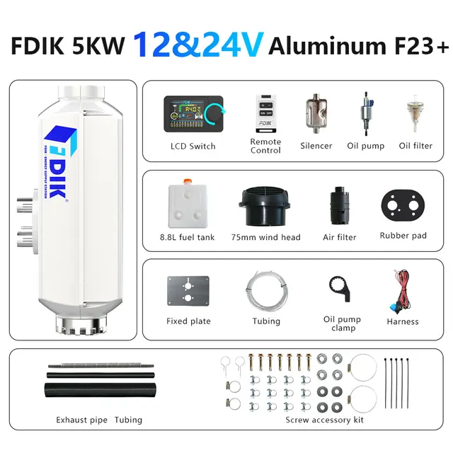 FDIK 디젤 무시동 히터 알루미늄 쉘 프로 에어 노브 스위치차량요트 보트용 유사 Websato 에바스패커 12V 2