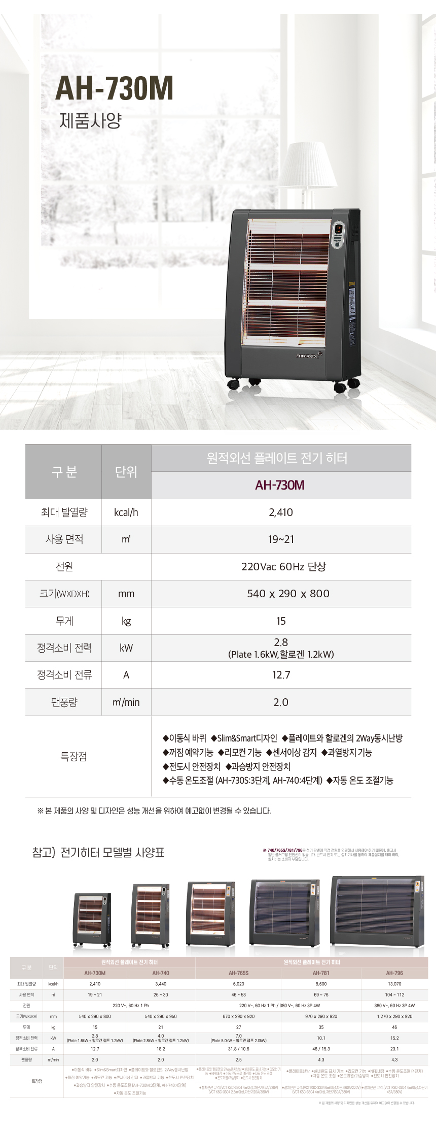 (3일내 배송) 에어렉스 헵시바 전기히터 AH-730M 6평형