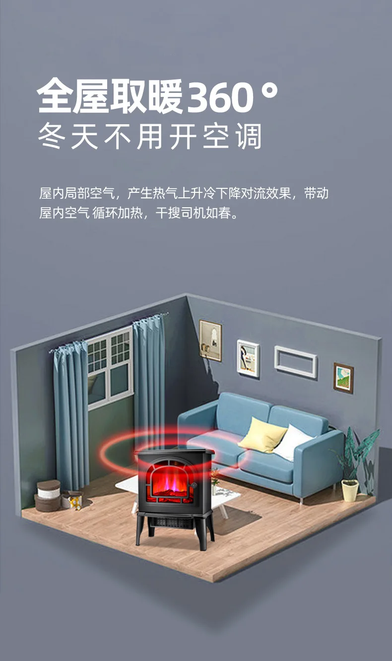 난방 히터 전기 온풍기 겨울 난방기 가정용 벽난로 실내 소형 컨디셔너 고출력 가열 화염 송풍기 선풍기