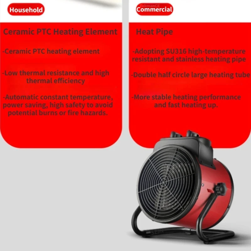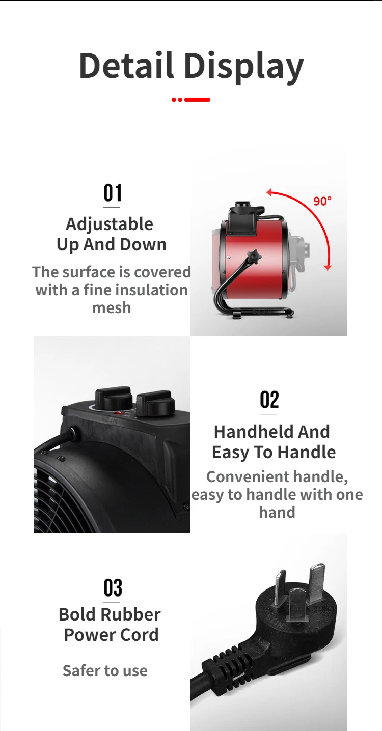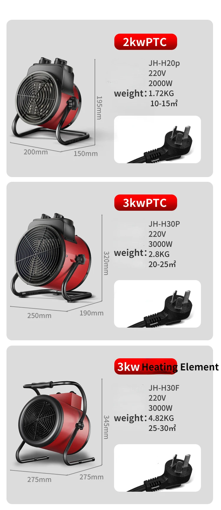 난방 히터 전기 온풍기 겨울 난방기 산업용 휴대용 송풍기 조정 가능한 스토브 라디에이터 열 공기 온열기