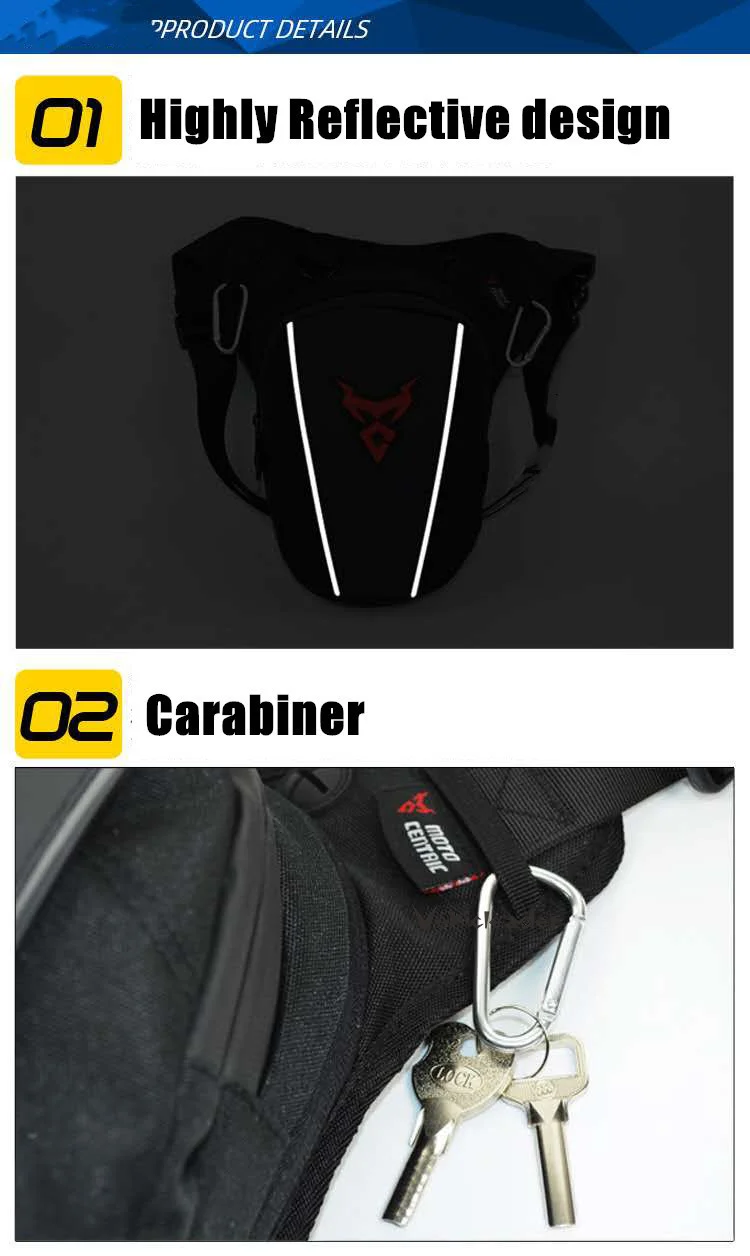 작은 가방이지만 고용량, 유용한 다리 오토바이 가방.