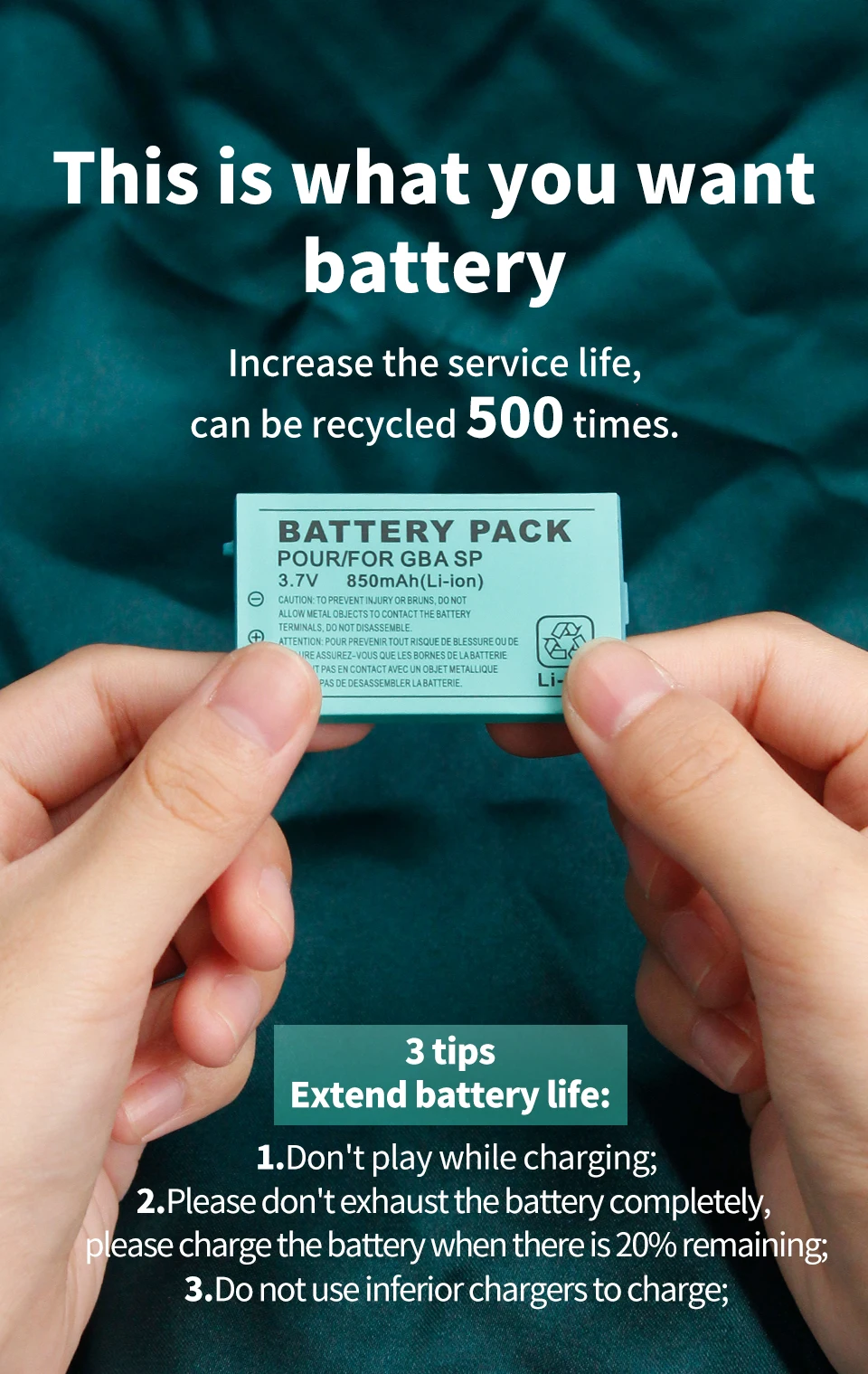 닌텐도 게임 보이 어드밴스 GBA SP 용 OSTENT 850mAh 충전식 리튬 이온 배터리 + 툴 팩 키트
