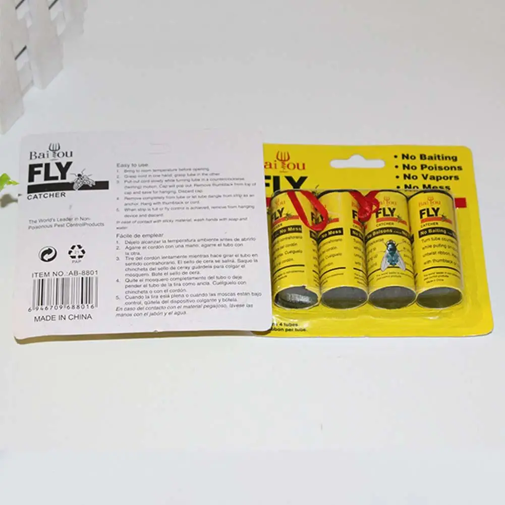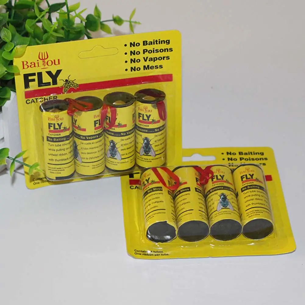 파리, 모기 및 기타 작은 비행 곤충을위한 끈적 끈적한 종이 스트립 롤입니다.