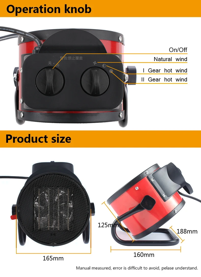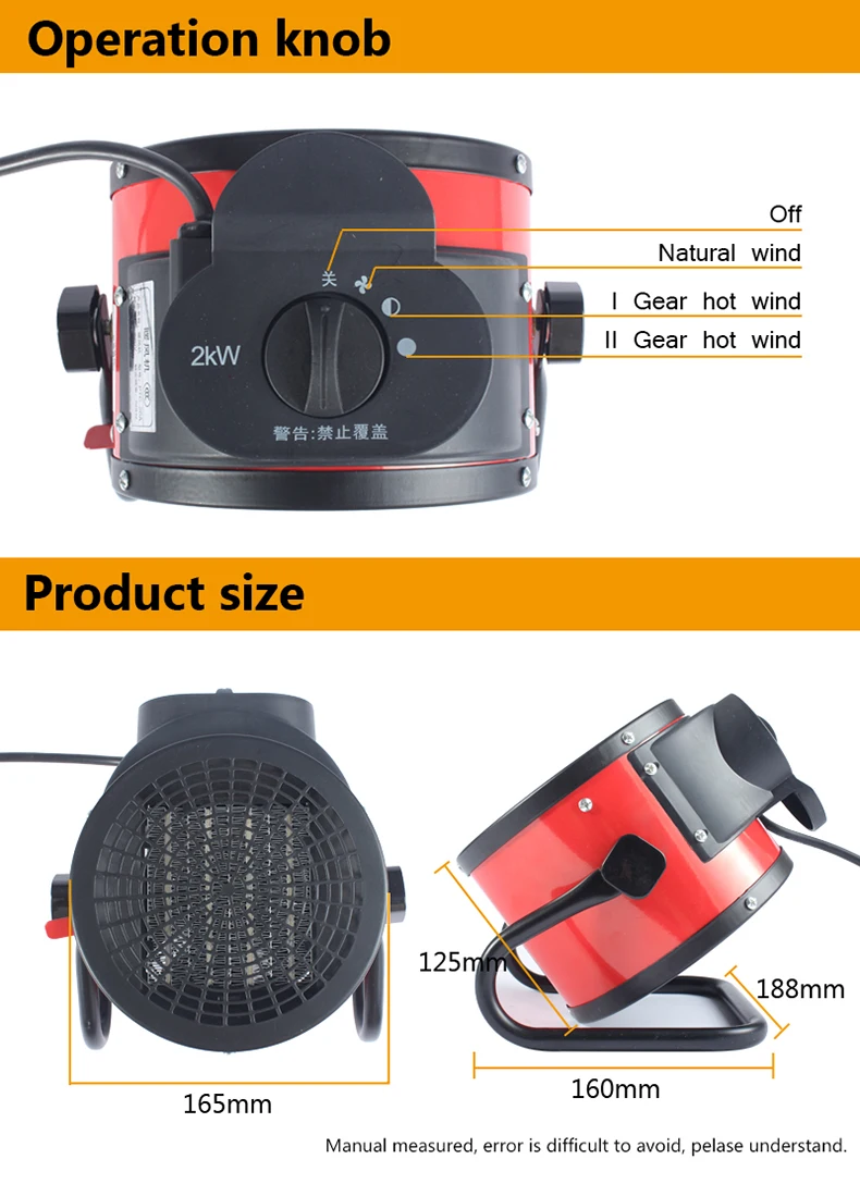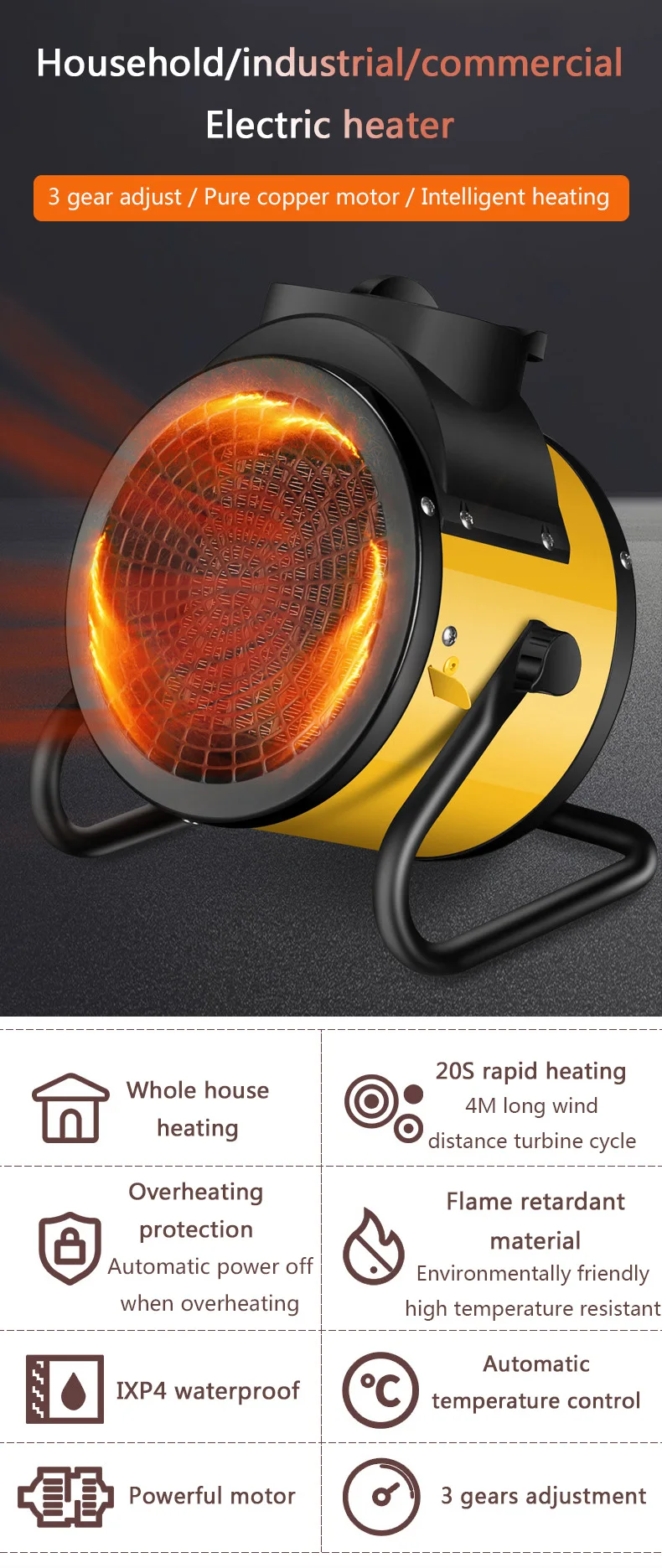 DMWD 휴대용 산업용 전기 팬 히터 온도 조절기 공기 온열기 기계실 라디에이터 빠른 난방 송풍기 사무실 3