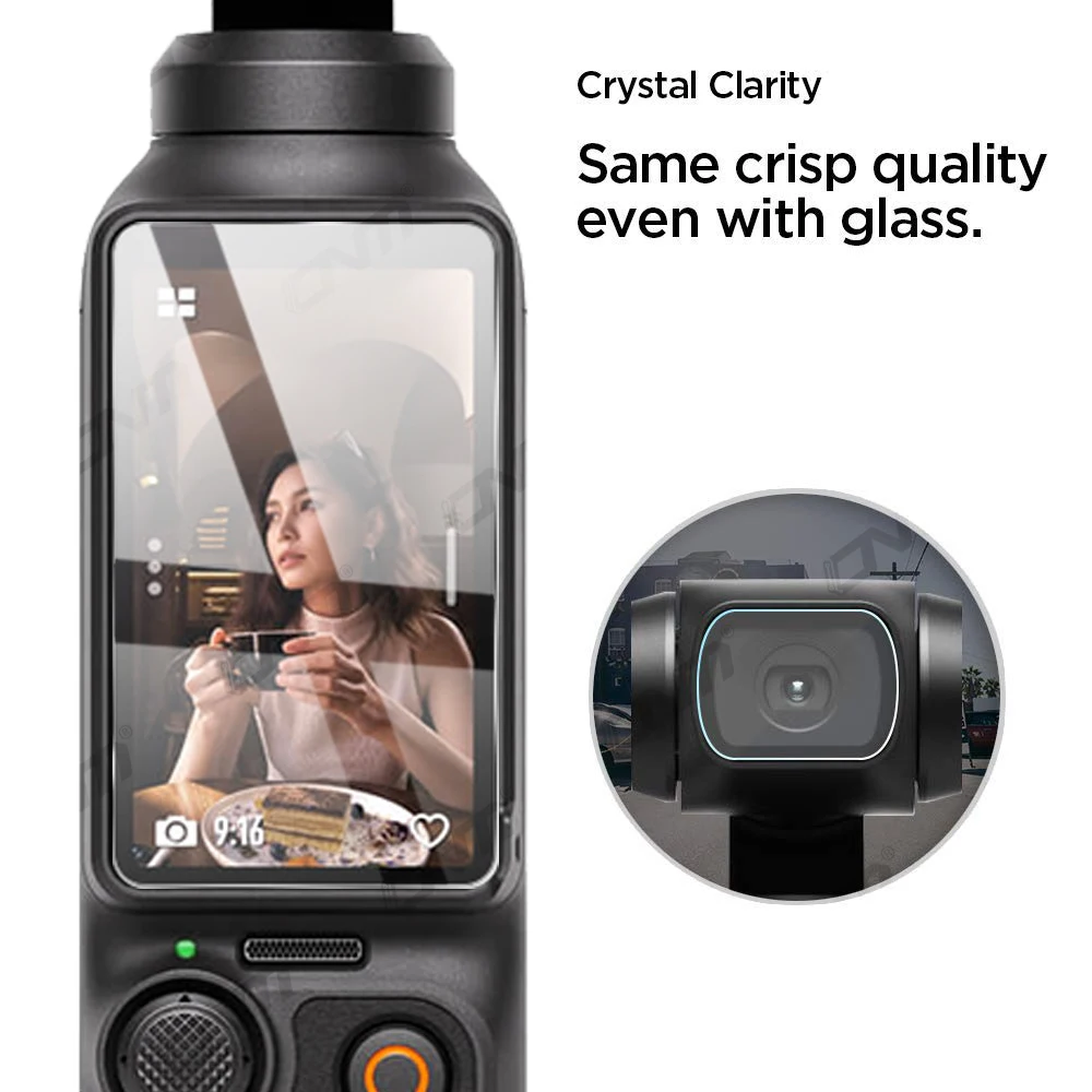 ?DJI OSMO 포켓 3 에 맞는 강화 유리 필름. 가장자리에서 가장자리로 쉽게 설치할 수 있습니다.