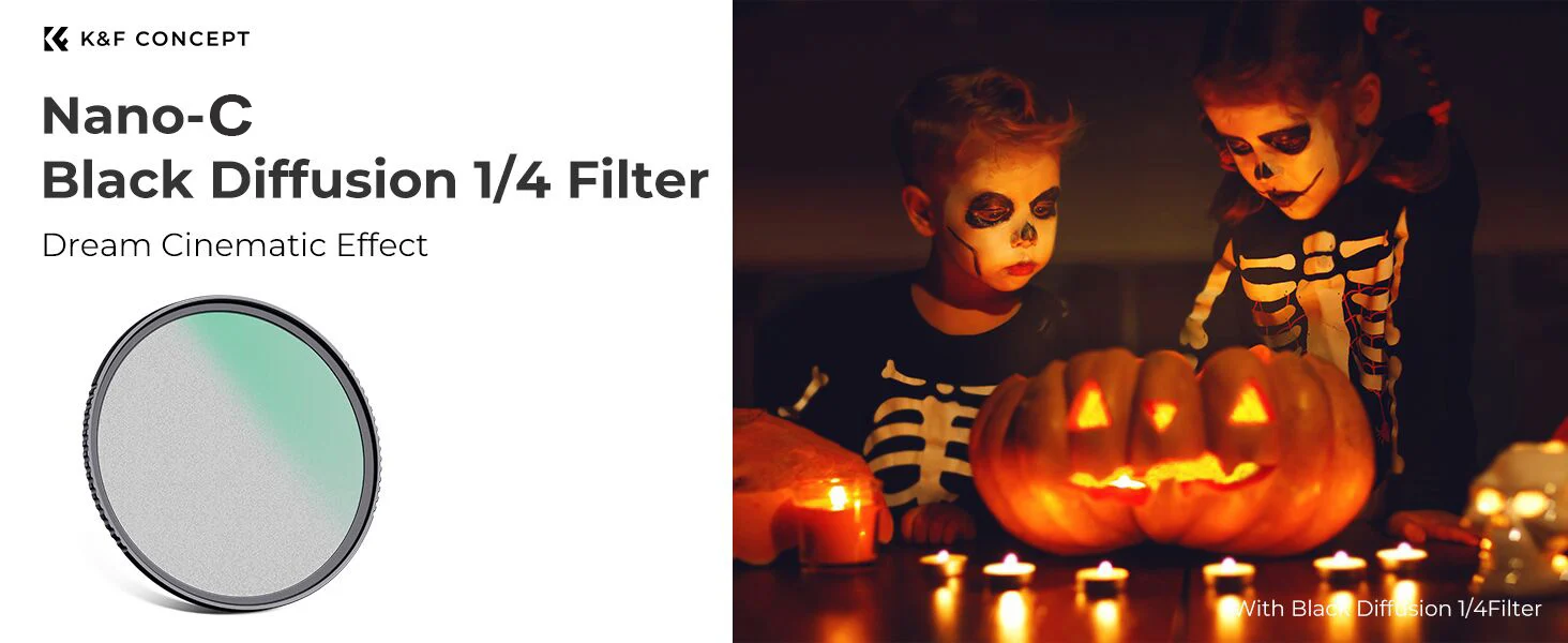 K & F 컨셉 C-시리즈 블랙 미스트 확산 1/4 필터 49mm 52mm 55m 58mm 62mm 67mm 77mm 82mm 비디오/Vlog/인물 사진을 위한 미스트 몽환적인 영화 효과